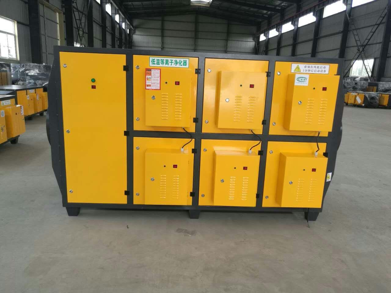 子體是繼固態、液態、氣態之后的物質第四態,采用脈沖高頻高壓等離子電源,利用雙介質齒板放電裝置,以 放電形式產生等離子體,在毫秒級的時間內,把空氣和廢氣分子擊穿,發生一系列分化裂解反應,從而產生高濃度、高強度、高能量的各種活性自由基、電子、離子、臭氧、原子氧、生態氧等,在納秒級的時間內,可以瞬間對廢氣和臭氣分子產生氧化還原反應;活性自由基可以有效地破壞各種病毒、細菌中的核酸,蛋白質,使其不能進行正常的代謝和生物合成,從而致其死亡;而生態氧能迅速的將有機廢氣分子異味氣體分解或者還原為低分子無害物質;另外,借助等離子體中的離子和物體的聚合吸附作用,可以對小至亞微米級的細微有機廢氣顆粒物進行有效的吸附沉降處理。